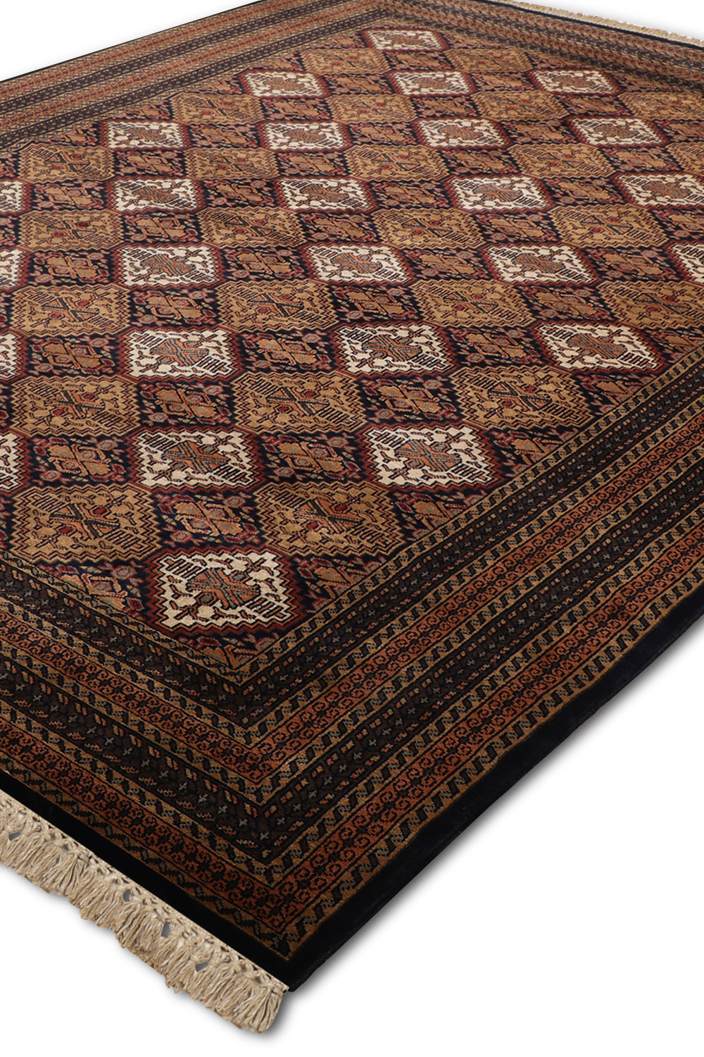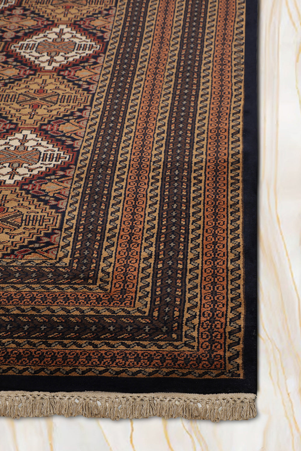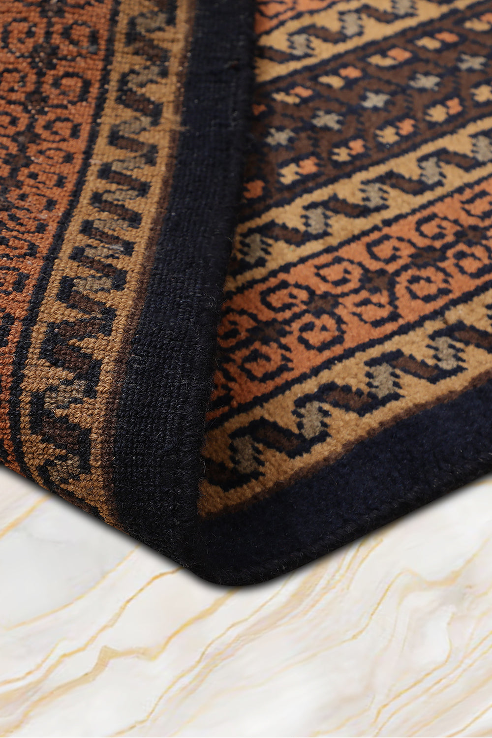 Add character to your space with the Tara rug, a beautifully hand-knotted piece from our Junoon Collection that captures the essence of tribal heritage. This 8 x 10 ft wool rug, featuring a medium pile with a mild soft texture, showcases a geometric diamond motif in deep indigo dusk, rich chestnut amber, and hints of warm taupe. Its design draws from Central Asian nomadic traditions, where diamond patterns symbolized protection and unity since ancient times, often woven into rugs by tribes to reflect their journeys and identity. These motifs, embodying cultural narratives of resilience and community, influenced textile arts across trade routes, blending tradition with rustic charm. The inviting texture makes it perfect for living rooms or dining rooms seeking a bold accent.