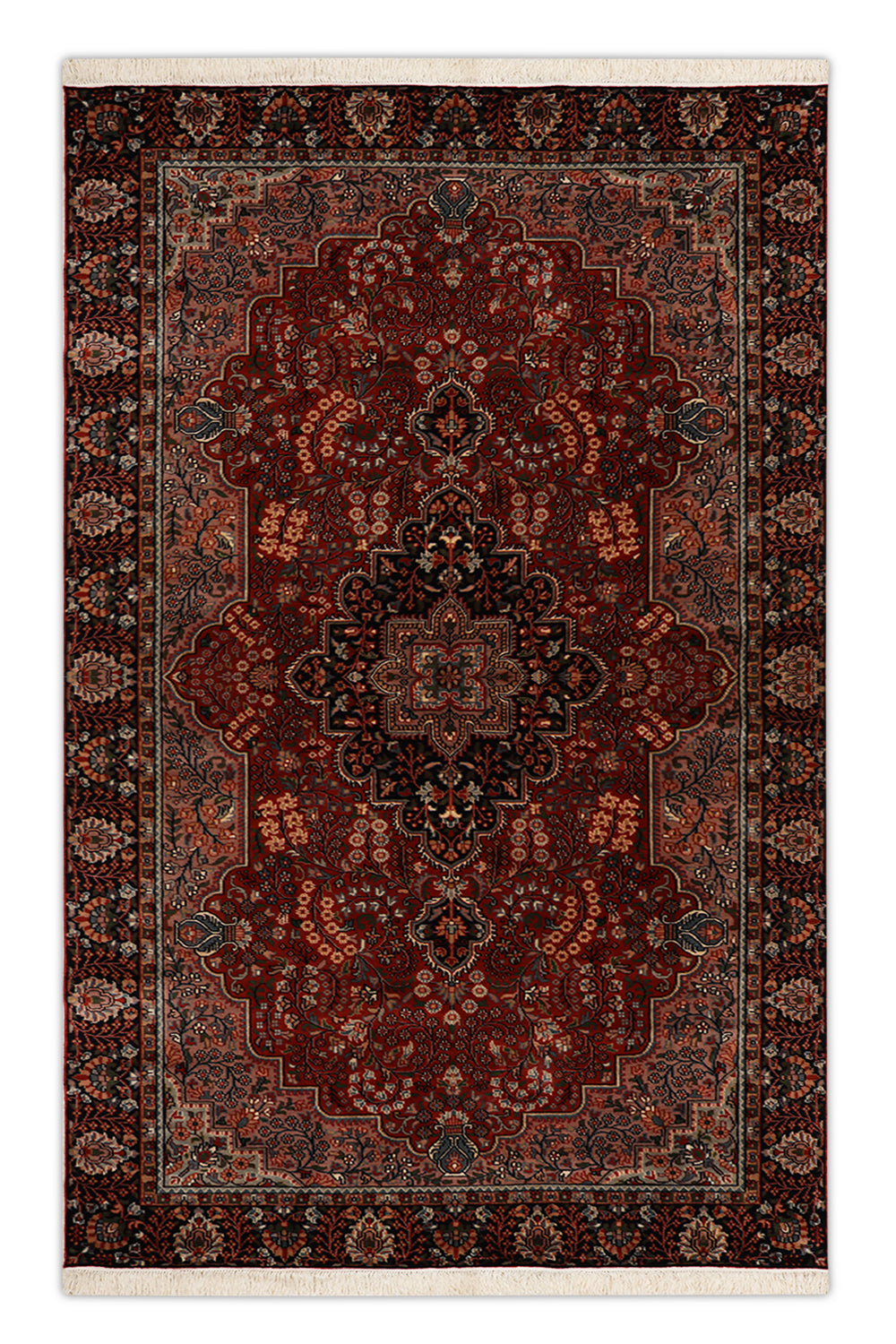 Enhance your home with this rectangular rug, where every knot weaves a story of historical richness and contemporary style. The Oriental floral and medallion design, rooted in Persian heritage, complements both classic and modern interiors with its detailed craftsmanship. Ideal for today’s homes, it blends durability with a luxurious feel, creating a warm yet sophisticated focal point. Its rich tones transform any room, infusing it with a sense of cultural depth and understated refinement. Discover a rug that connects timeless traditions with modern living spaces.