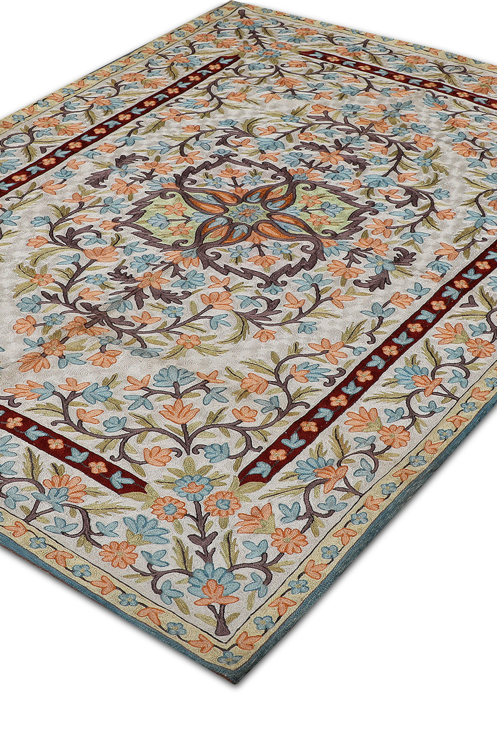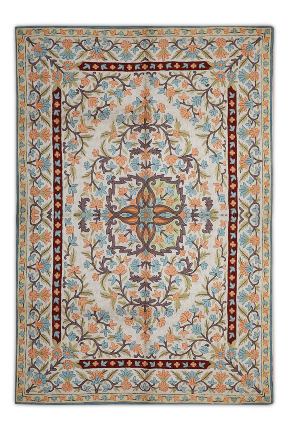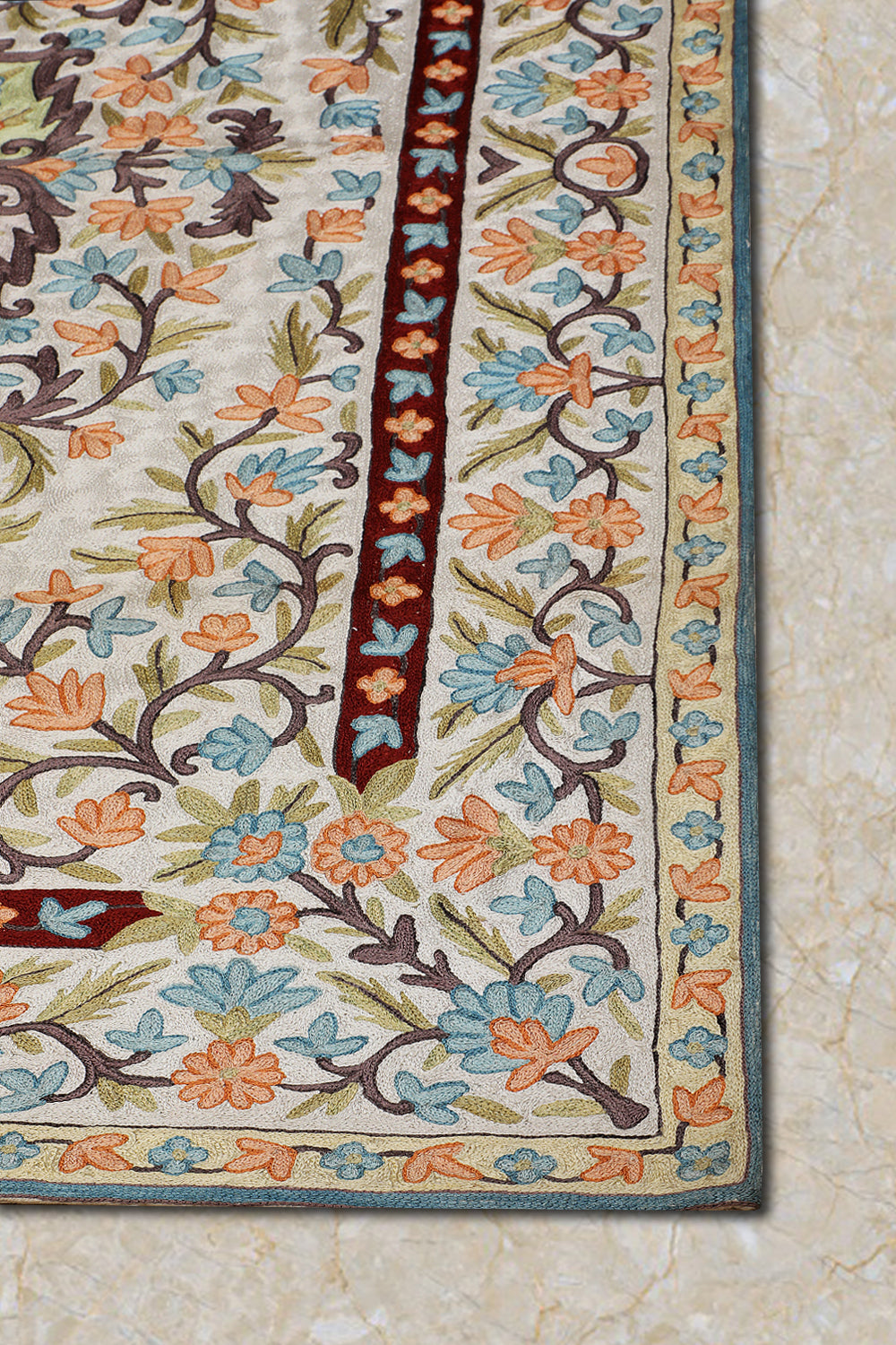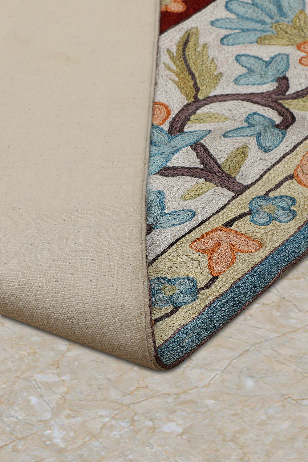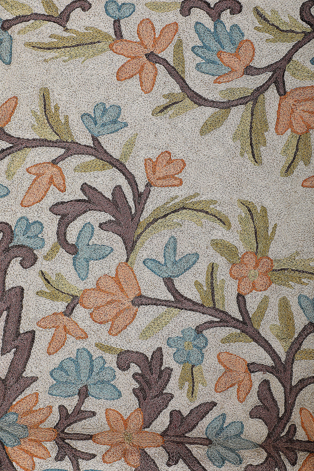 KR00266 Cream/Blue Chain Stitch Embroidery Rug