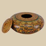 The hand-painted artwork is a celebration of tradition, brought to life with striking colors and intricate patterns that trace the legacy of antique sculptures and decorative artifacts. The box's smooth finish and detailed ornamentation make it a statement of refined elegance.