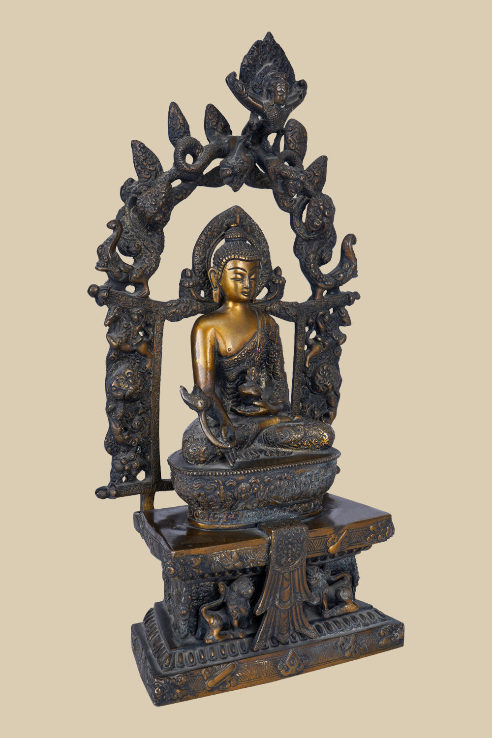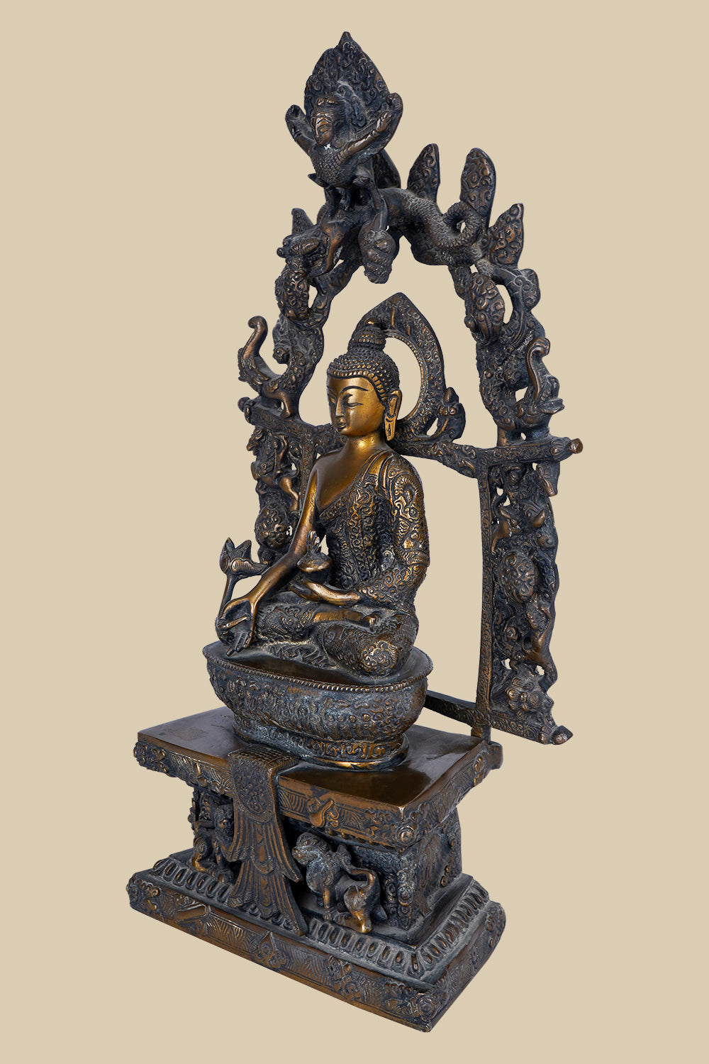 Cast in finely detailed brass, the sculpture’s elegant lines and soft contours evoke a sense of inner peace, symbolizing enlightenment and balance.The glimmering surface of the brass adds a sense of timelessness to the sculpture, highlighting every delicate feature, from the serene expression on Buddha’s face to the flowing folds of his robes. The radiant finish enhances the spiritual aura, making this sculpture not only a decorative statue but also a constant reminder of the pursuit of peace.