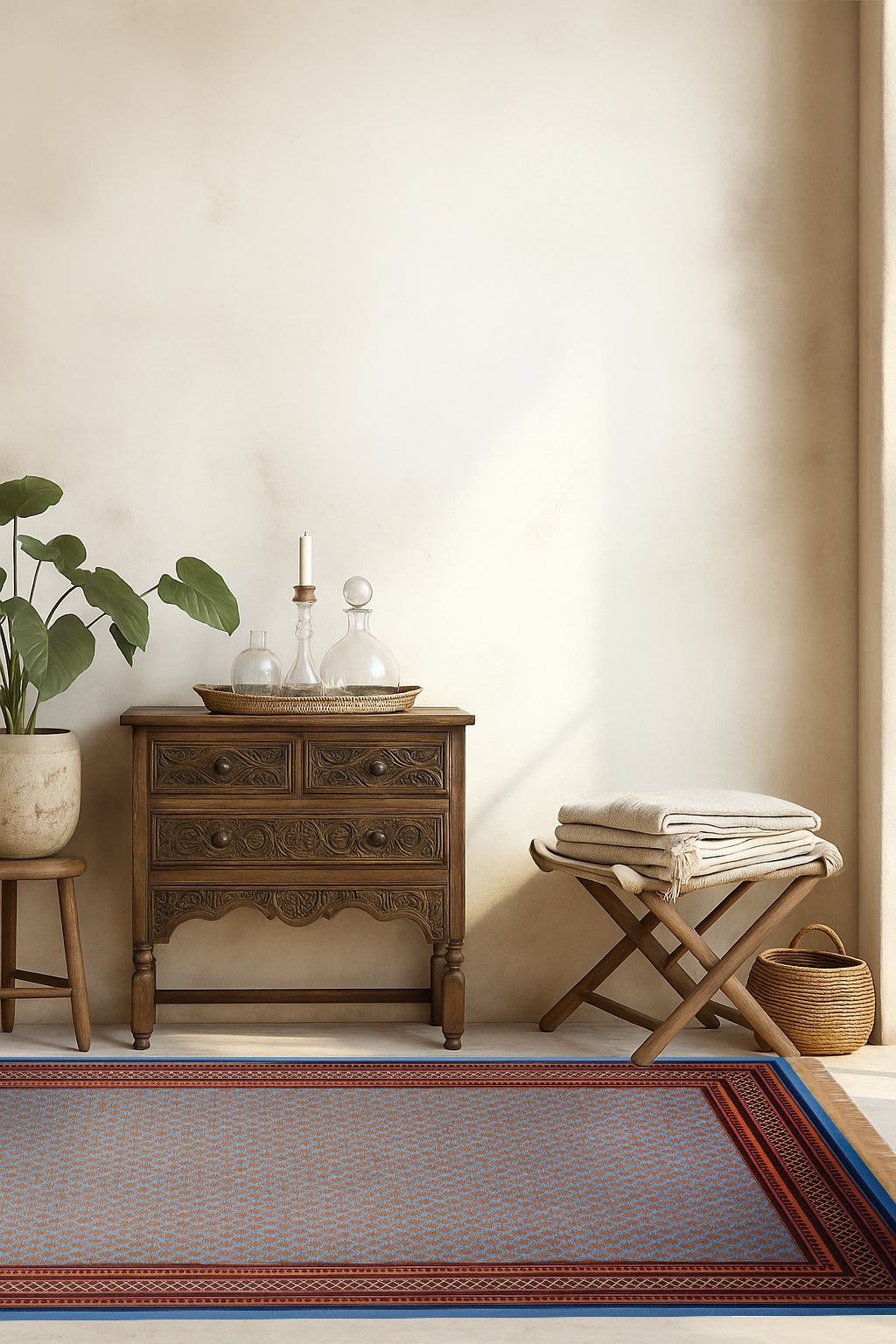 The interplay of cobalt and rust makes Veylan both striking and versatile. Ideal for grounding a modern living room or adding richness to a dining area, it offers a harmonious blend of tradition and contemporary elegance. More than a rug, Veylan is a woven statement of heritage and sophistication.