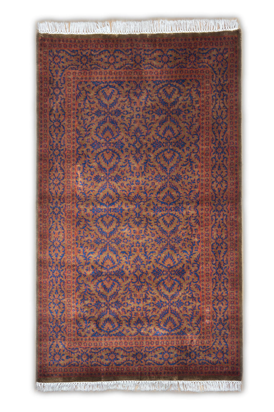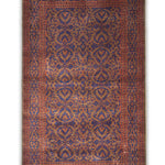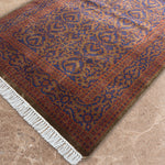 KR00285 Rust Brown/Royal Blue Wool Hand Knotted Rug