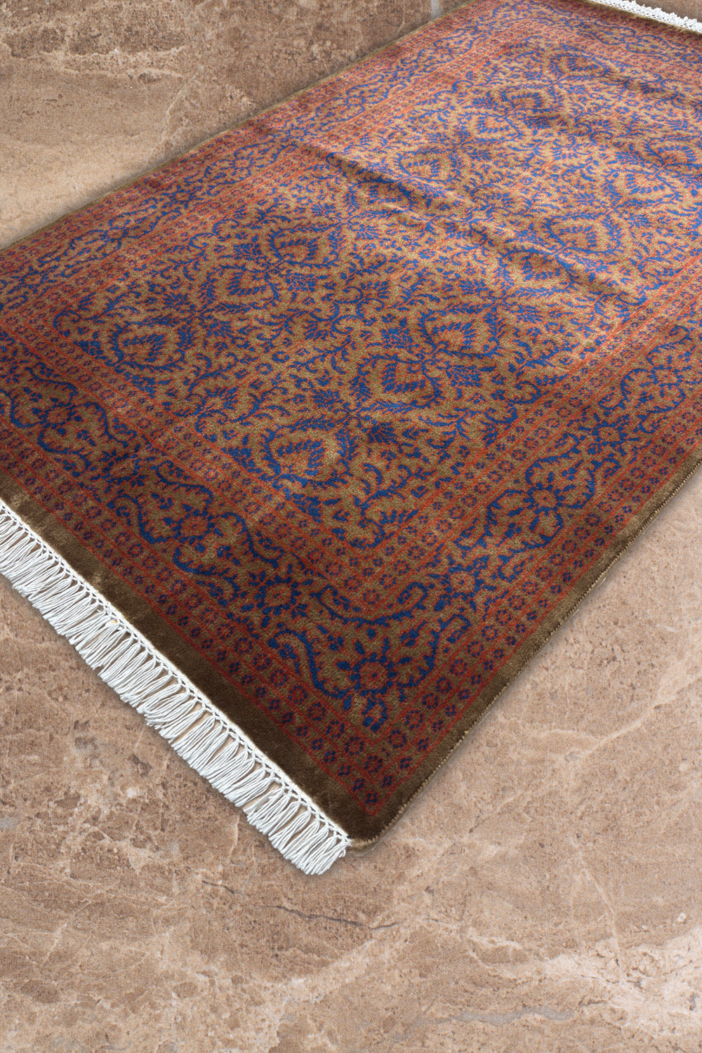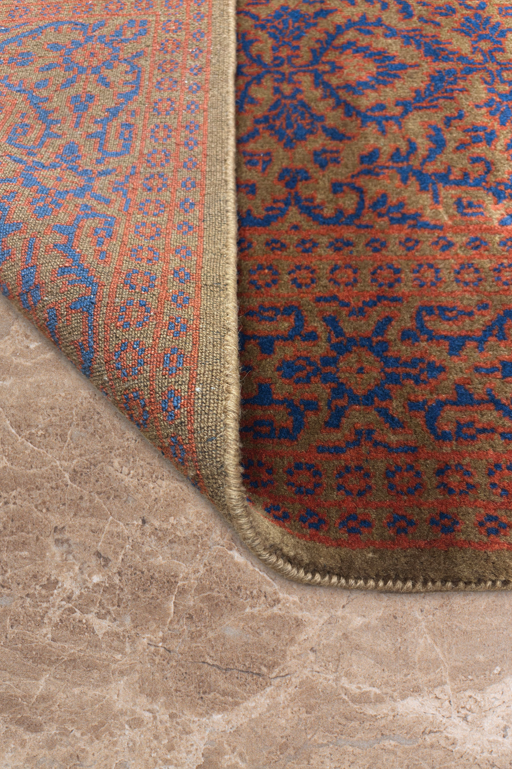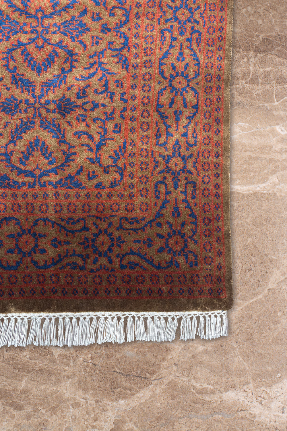 Yamuna - Hand Knotted Wool Rug in Rust Brown/Royal Blue
