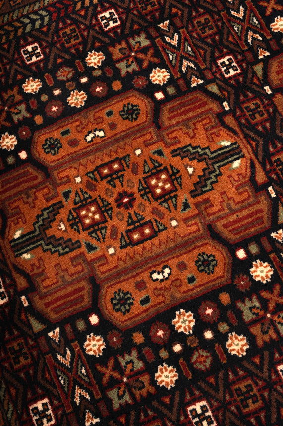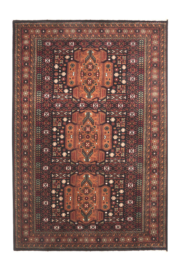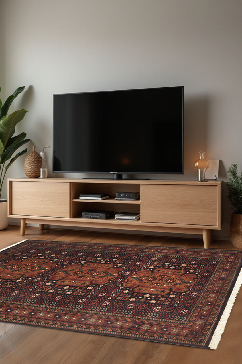 Enhance your space with this rectangular rug, where every thread weaves a story of nomadic legacy and modern warmth. The tribal geometric design, rooted in ancient symbolism, complements both minimalist and eclectic interiors with its bold yet earthy presence. Perfect for contemporary homes, it blends durability with a grounded elegance, creating a striking yet inviting focal point. Its rich tones transform any room, infusing it with a sense of history and cultural depth. Discover a rug that brings the spirit of the steppes into today’s living spaces.