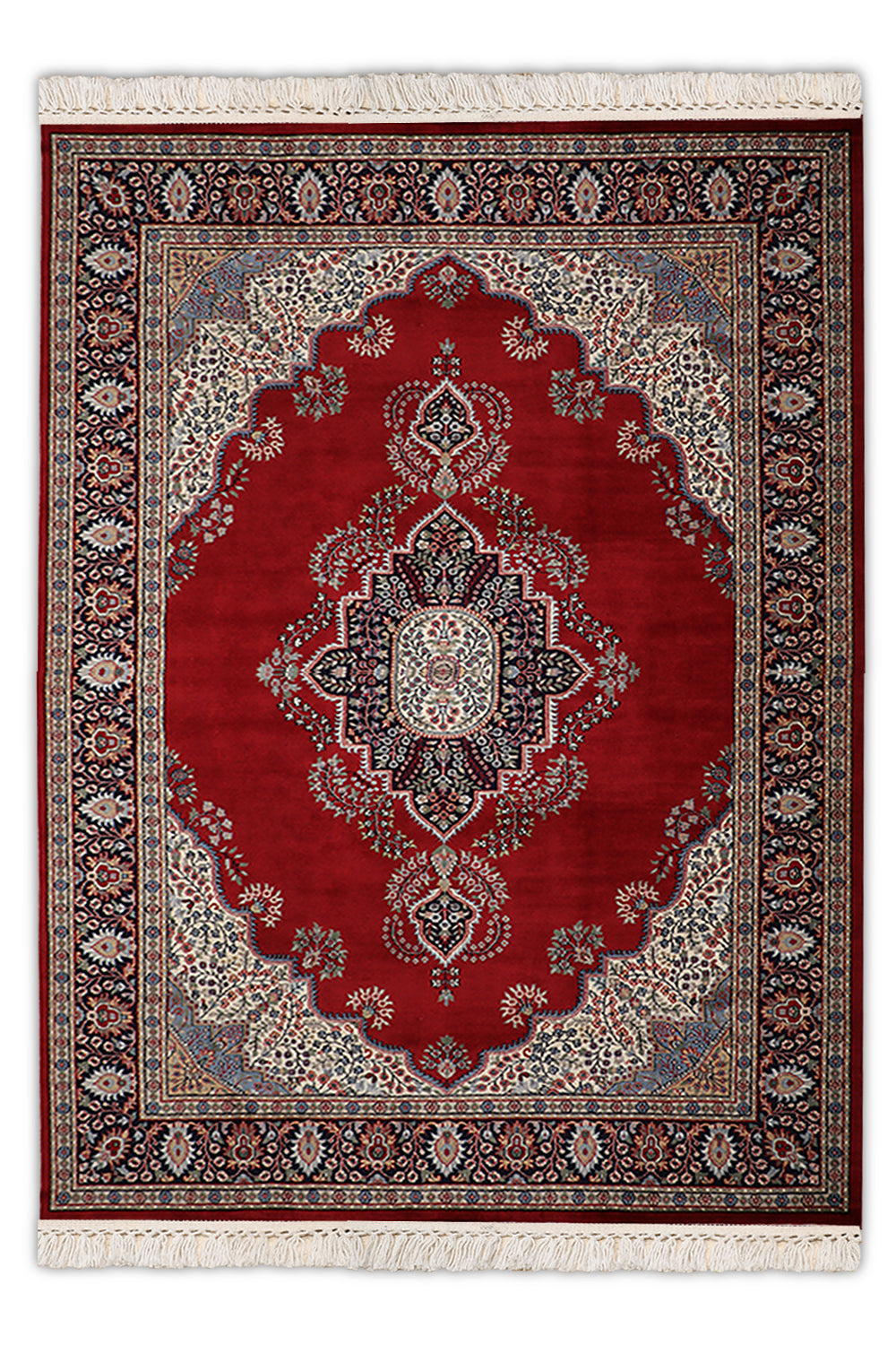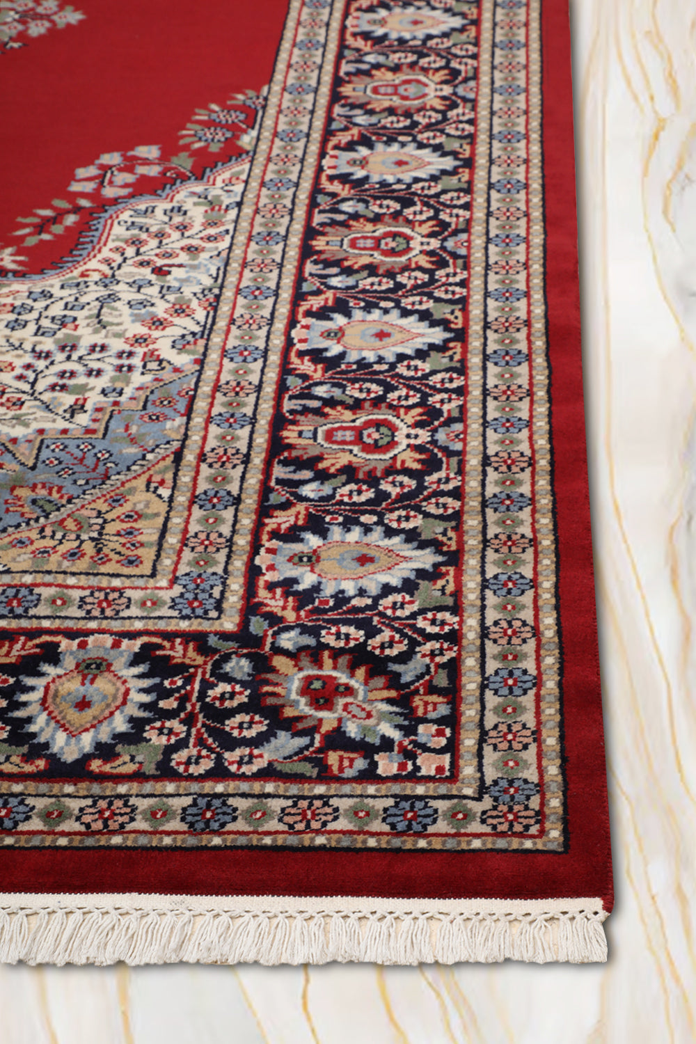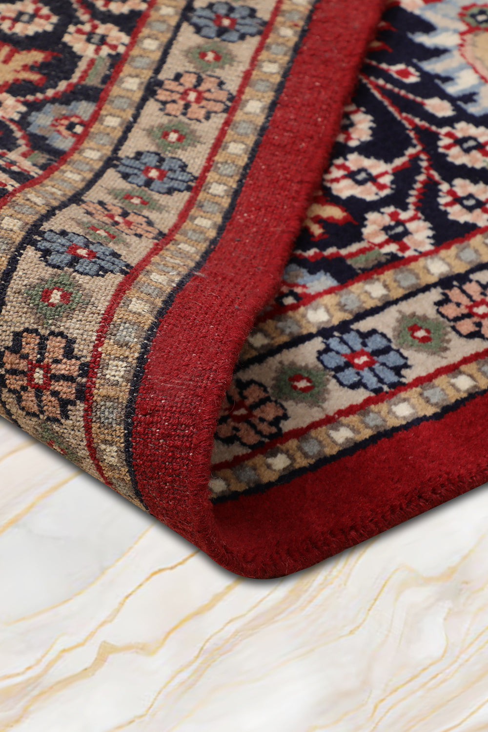 KR00238 Crimson Red/Navy Blue Hand Knotted Rug