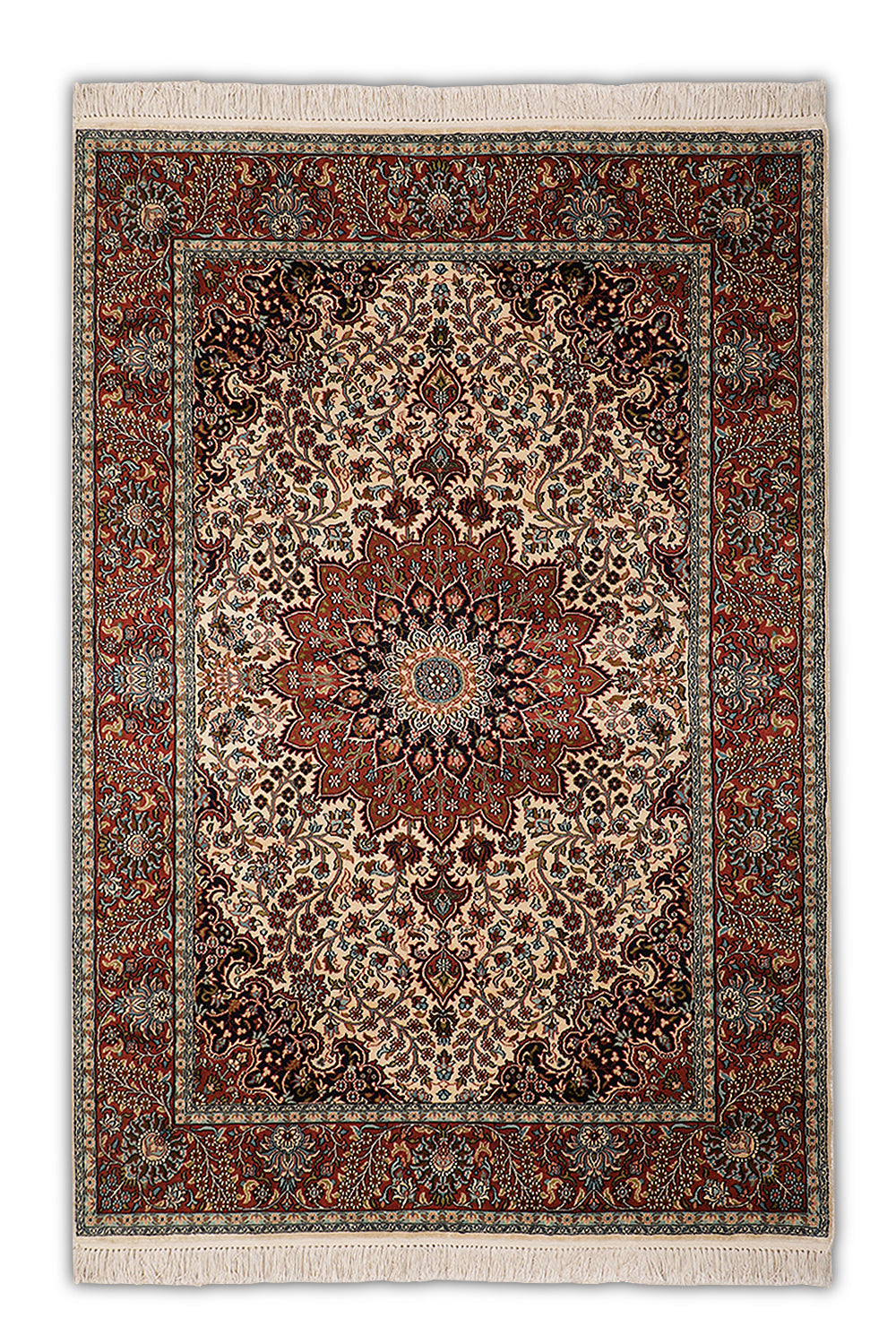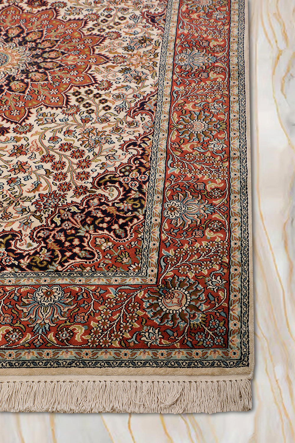 Zhaleh - Hand Knotted Silk Rug In Rust/Cream